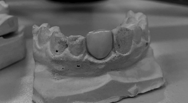 Nuestro objetivo será la elaboración de una carilla de cerámica (Disilicato de litio) lo más estética y funcional posible, respetando los márgenes de la pieza y diseñando una estructura con un grado de color y anatomía lo mas similar posible a la pieza adyacente.